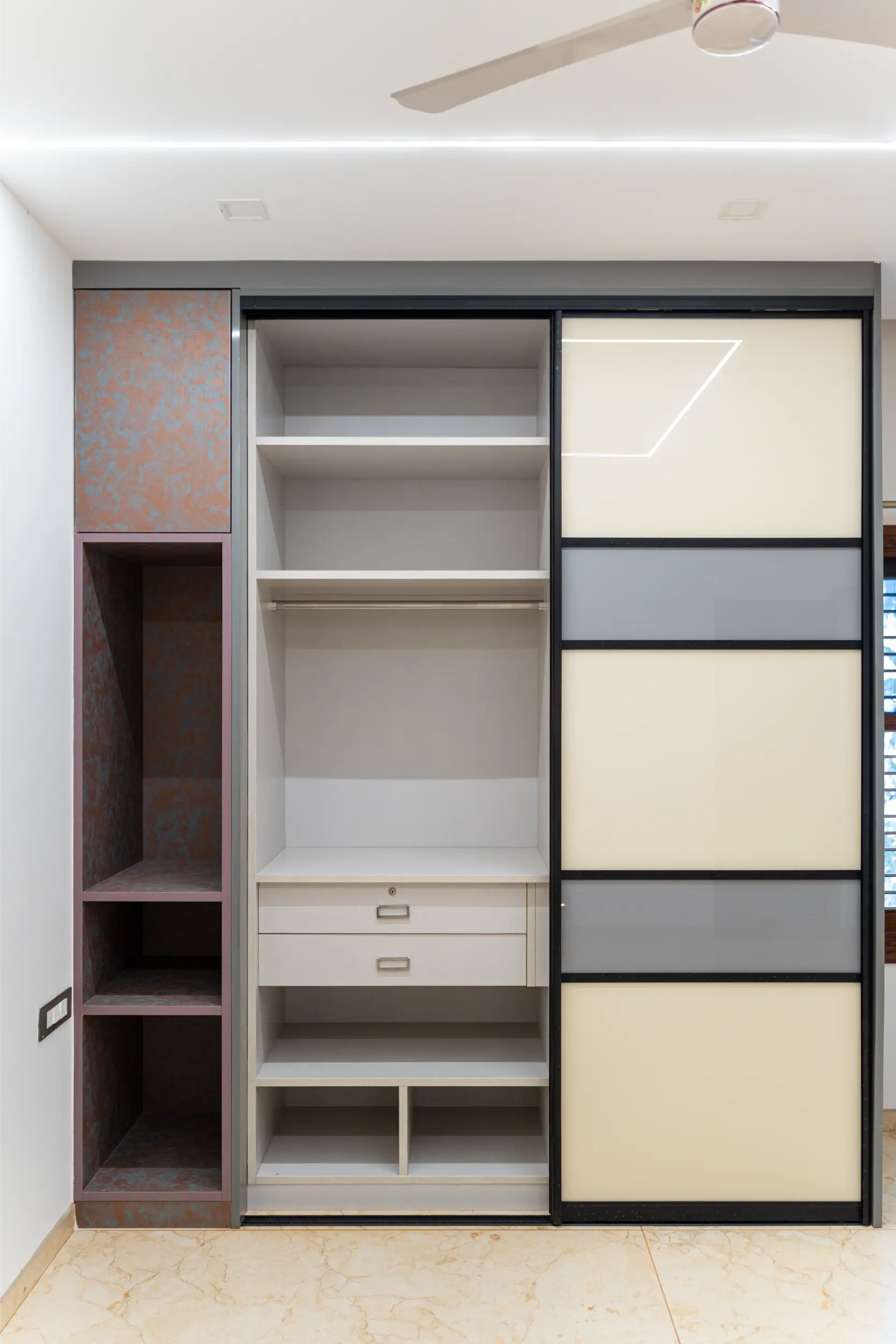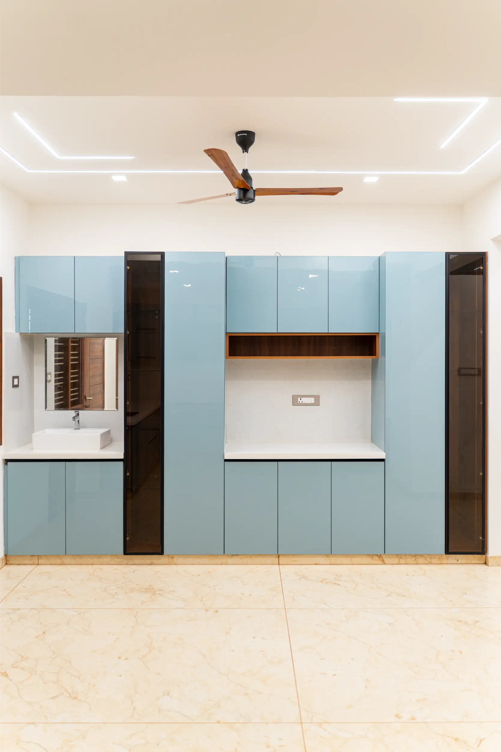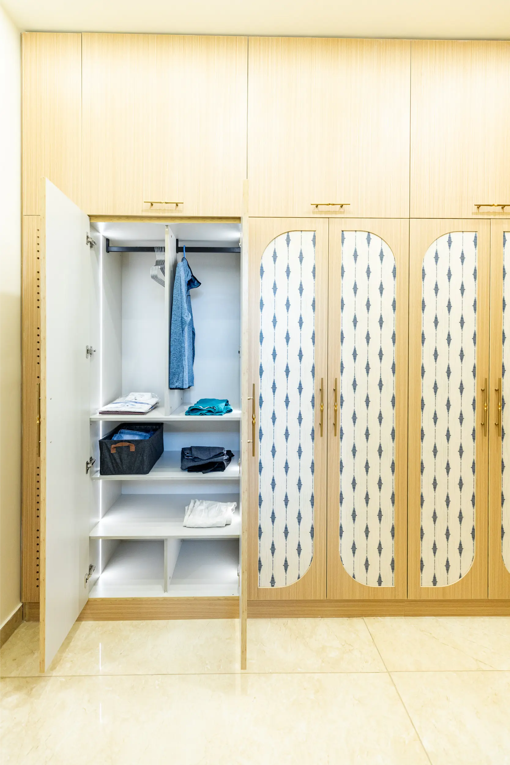 No more clutter. Our wardrobe solutions are designed to maximise space and match your interiors. Choose from sliding, hinged, or walk-in options – all with customizable compartments, finish choices, and soft-close mechanisms.